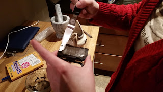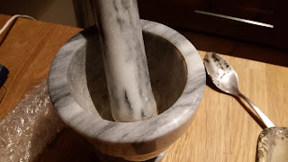 We took some of the dirt from the creamer, and my daughter ground it down to a fine powder.