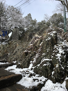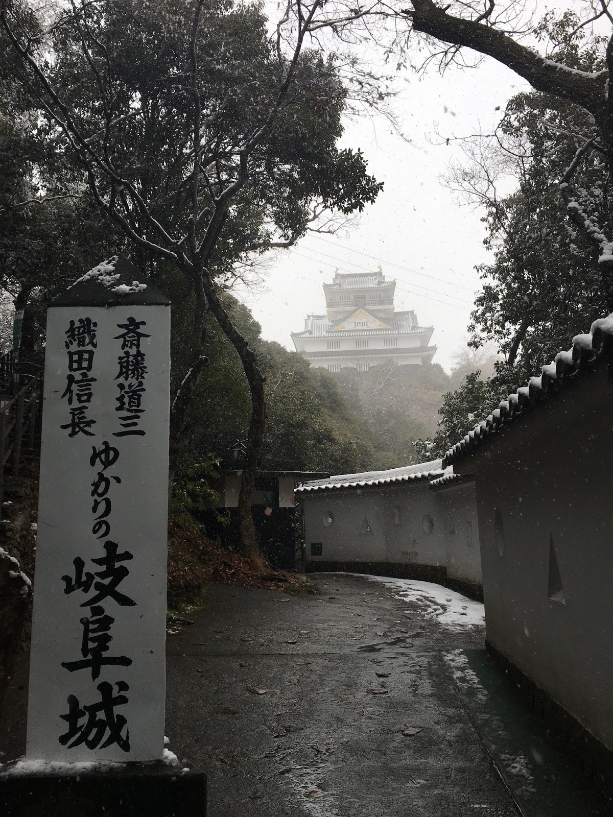 This is Gifu Castle, about 40 or 50 miles north of Nagoya, where my daughter is staying during her visit. She sent other pictures of herself walking around the castle grounds in the snow. It was beautiful. It was perfect. I always told my daughter that she had inherited my mother’s love for the beautiful, the glamorous, the lavish. It certainly didn’t come from me! So I thought her choice of placing a little bit of her grandmother at the base of a castle was exactly the right place.